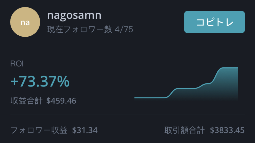 5人目”nagosamn”さんのように、本ブログから口座開設したコピートレーダーさんを紹介させていただきます。