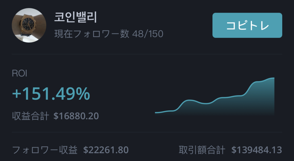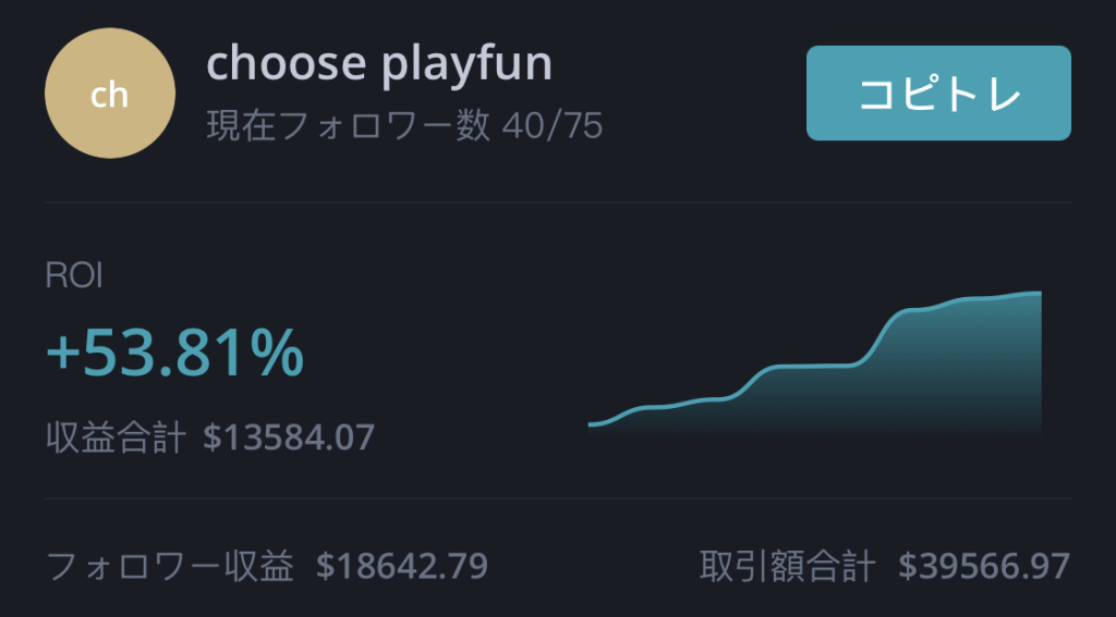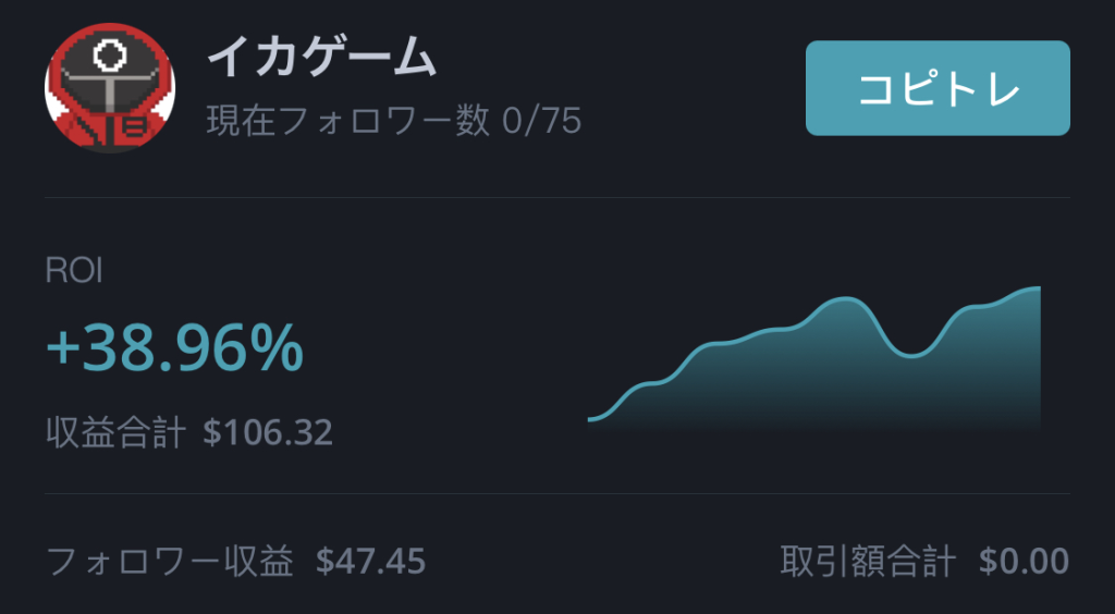 フォロワーはすでに48人もおり、人気の出る可能性が高いトレーダーさんです。