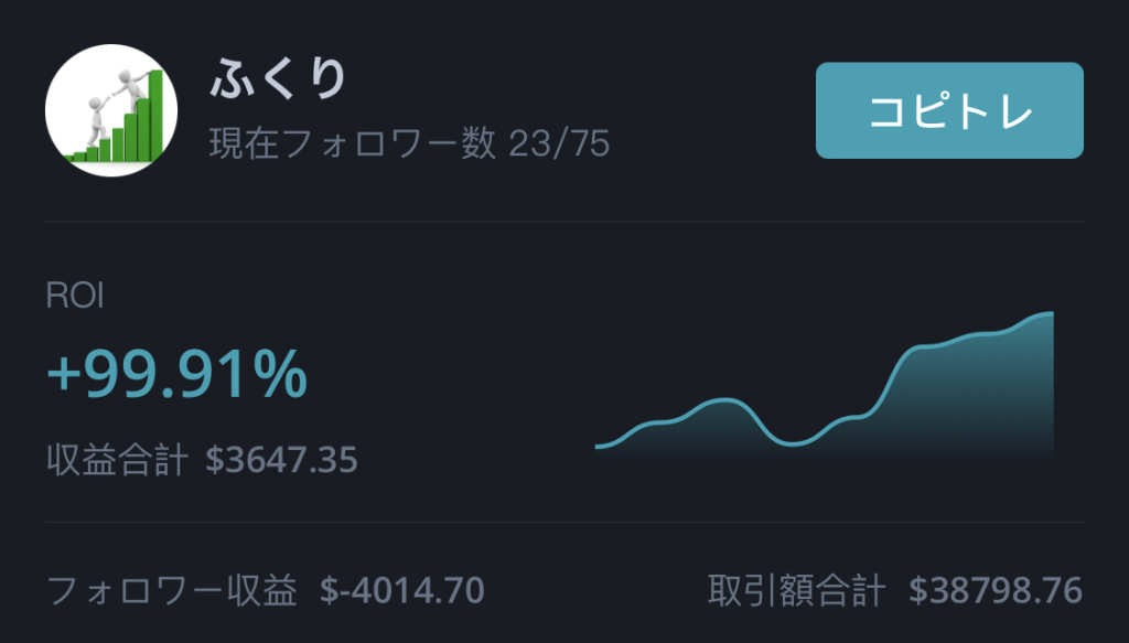 過去まで遡ると100%超えの損失もありますが、人によって相場の時期により向き不向きがあるので「今のトレンドはこの人をフォローする」といったようなトレーダー選びも選択肢のひとつです。
